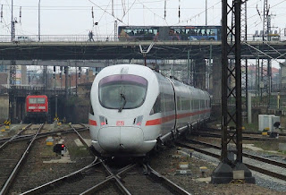 Kilka kadrów w poszukiwaniu czegoś wartościowego - z lewej nowszy wagon typu push-pull, z prawej lok serii 371 w innym malowaniu :
